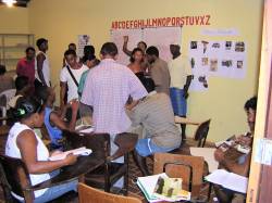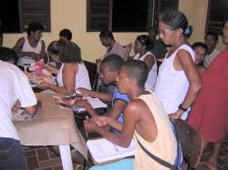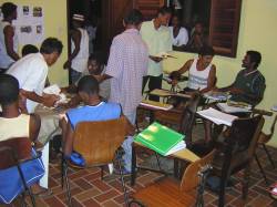 Diariamente 3 turmas de 60 alunos são alfabetizadas em curso de seis meses. São pessoas humildes de toda parte da região que estão vindo à escola a pé e de bicicleta. Não há outro espaço comunitário igual em toda a Orla de Camaçari. Duas turmas estudam no horário noturno, pois são trabalhadores empregados na área.