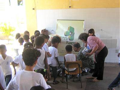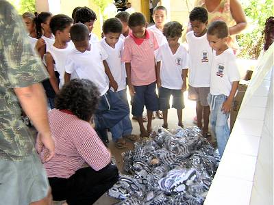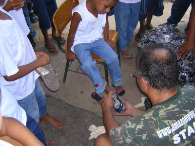 Em parceria com a Fundação Rathaplan e o Exército Brasileiro, o Instituto Planeta Água realizou a distribuição de tênis, às crianças carentes da Escola Municipal de Barra do Jacuípe, no dia 7 de março de 2005. Clique nas imagens para ver em tamanho maior.